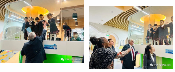 在參觀過程中,我園領(lǐng)導與外國友人們圍繞幼兒園的辦園理念、